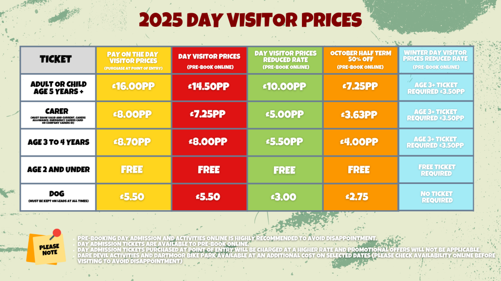 - Dare Devil activities and Dartmoor Bike Park (Available on select dates at additional cost. Please check availability online to avoid disappointment. Pre-booking essential at www.riverdart.co.uk)